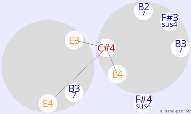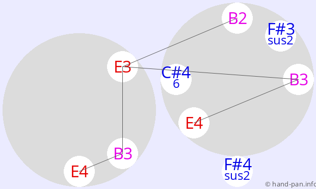 Die folgende Übersicht soll helfen, eine oder mehrere Handpans mit einer bestimmten vorgegebenen Skala im Kontext verschiedener Tonarten zusammen mit anderen Musik-Instrumenten einzusetzen.