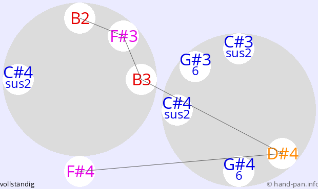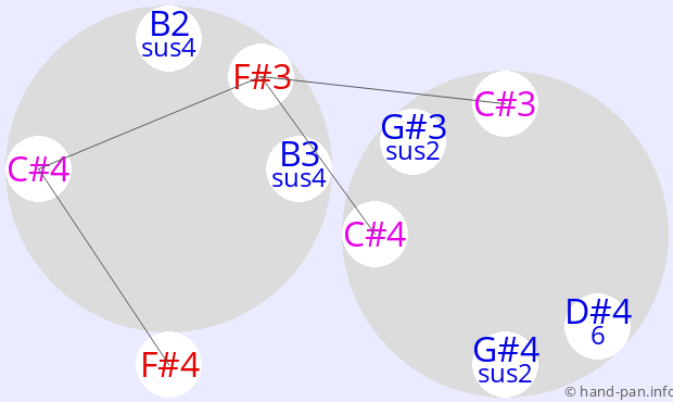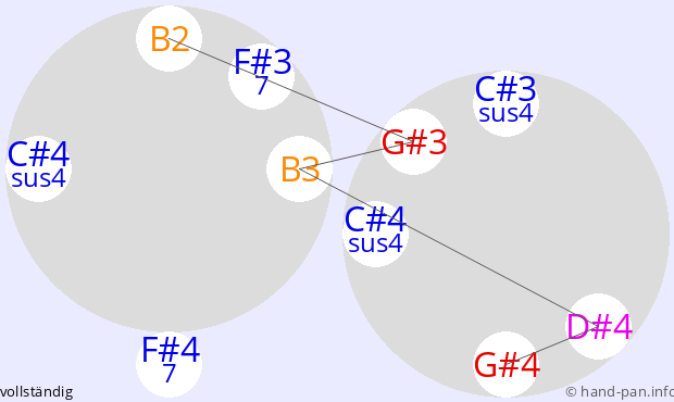 Die folgende Übersicht soll helfen, eine oder mehrere Handpans mit einer bestimmten vorgegebenen Skala im Kontext verschiedener Tonarten zusammen mit anderen Musik-Instrumenten einzusetzen.