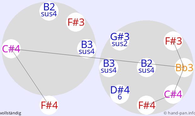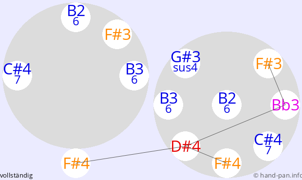 Die folgende Übersicht soll helfen, eine oder mehrere Handpans mit einer bestimmten vorgegebenen Skala im Kontext verschiedener Tonarten zusammen mit anderen Musik-Instrumenten einzusetzen.