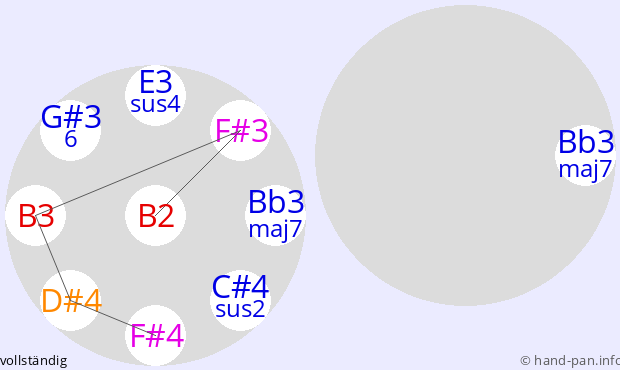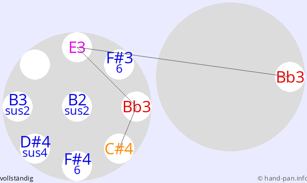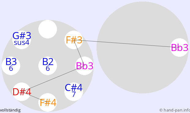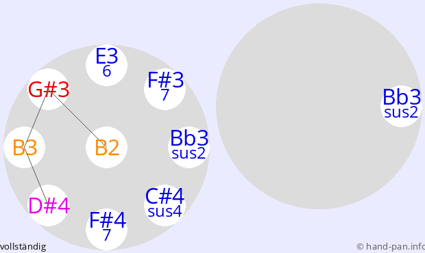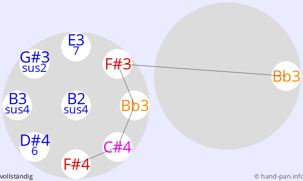 Die folgende Übersicht soll helfen, eine oder mehrere Handpans mit einer bestimmten vorgegebenen Skala im Kontext verschiedener Tonarten zusammen mit anderen Musik-Instrumenten einzusetzen.