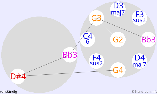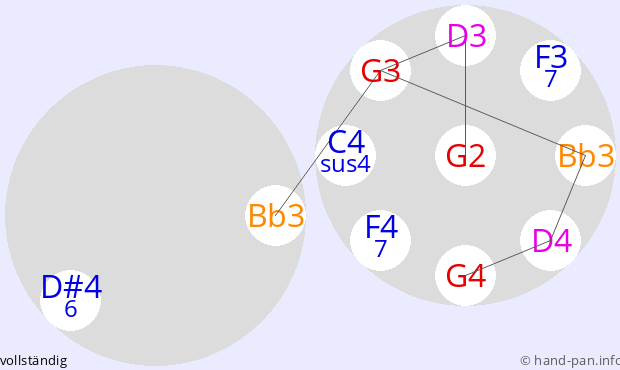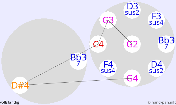 Die folgende Übersicht soll helfen, eine oder mehrere Handpans mit einer bestimmten vorgegebenen Skala im Kontext verschiedener Tonarten zusammen mit anderen Musik-Instrumenten einzusetzen.
