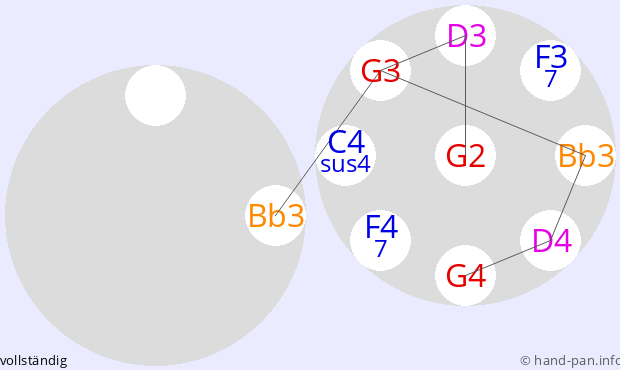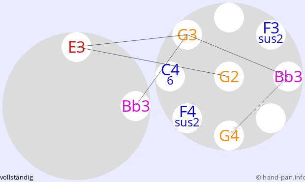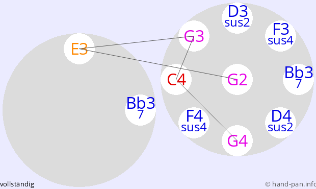 Die folgende Übersicht soll helfen, eine oder mehrere Handpans mit einer bestimmten vorgegebenen Skala im Kontext verschiedener Tonarten zusammen mit anderen Musik-Instrumenten einzusetzen.