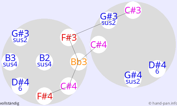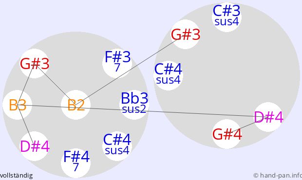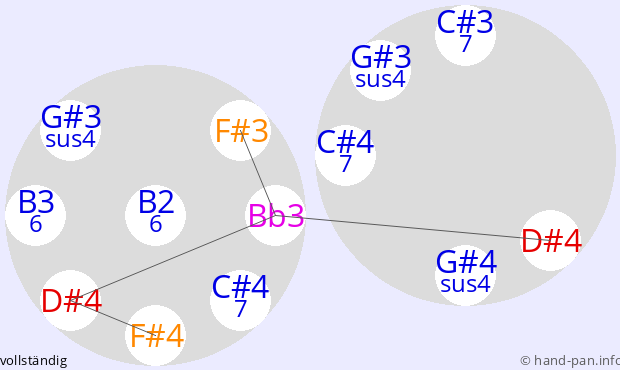 Die folgende Übersicht soll helfen, eine oder mehrere Handpans mit einer bestimmten vorgegebenen Skala im Kontext verschiedener Tonarten zusammen mit anderen Musik-Instrumenten einzusetzen.