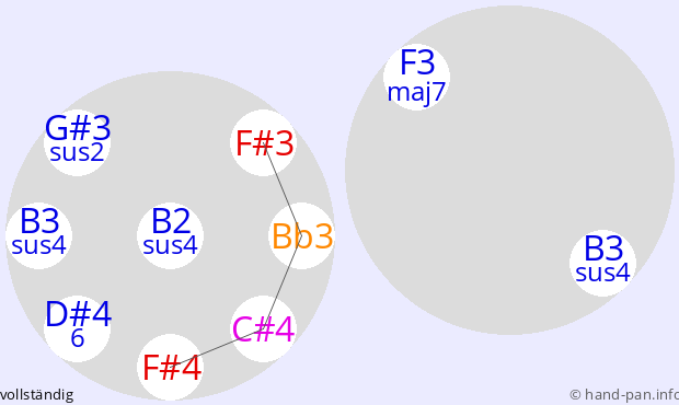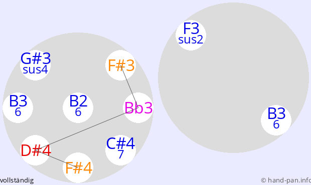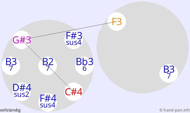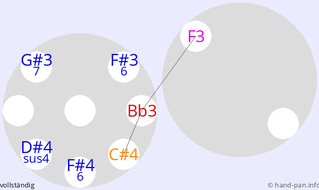 Die folgende Übersicht soll helfen, eine oder mehrere Handpans mit einer bestimmten vorgegebenen Skala im Kontext verschiedener Tonarten zusammen mit anderen Musik-Instrumenten einzusetzen.